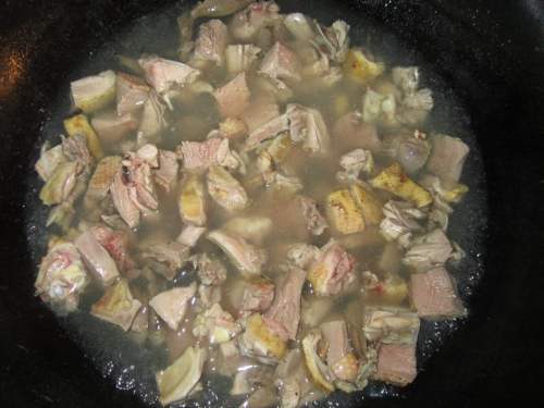 4先把切好的鸭肉焯水,去腥味。