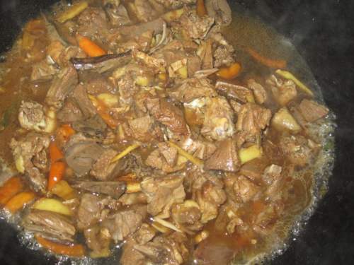 9再加入水,量以差不多盖住鸭肉为宜。完成后翻匀盛盘即可。