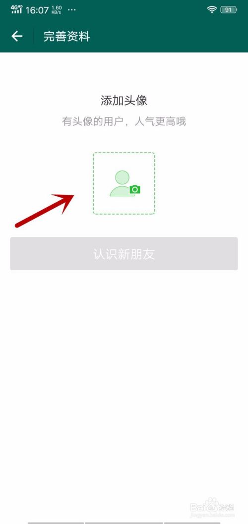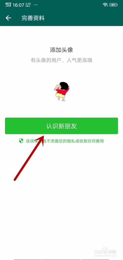 头像设置完成,点击【认识新朋友】按钮,如图所示。