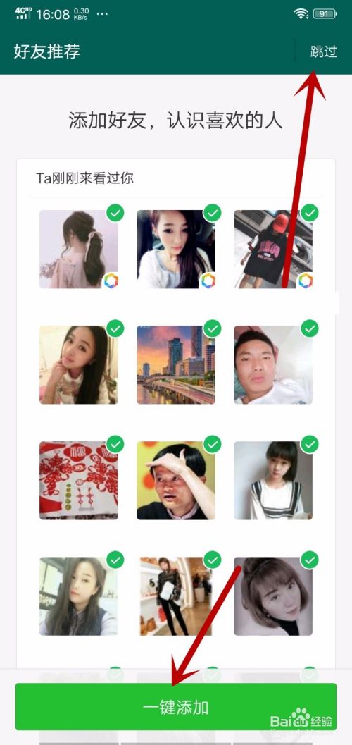 然后可以看到很多用户,点击一键添加可以添加,点击跳过,可以跳过添加,如图所示。