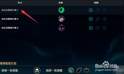 点击设置按钮选择英雄,点击右方地图图标可以锁定使用给配置方案的地图,一个配置方案可以设置多个英雄和地图。