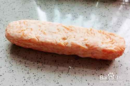 接着在盘中加入三勺土豆淀粉,搓成稍微硬一点的长条,备用。
