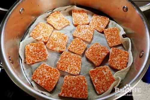 起蒸锅,锅中加入水,然后将胡萝卜片摆放在蒸锅中,开大火蒸制10分钟