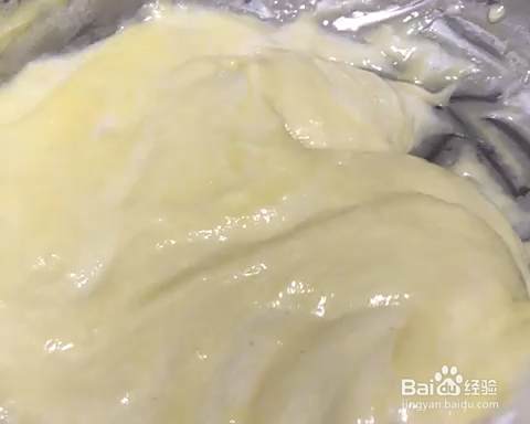 将蛋黄面糊倒入剩余的奶油容器中,然后重复上面的混合,直到光滑和细腻。