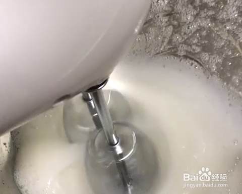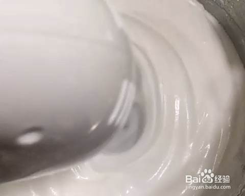 打蛋清。把它打到电动搅拌器的中间直到它变厚