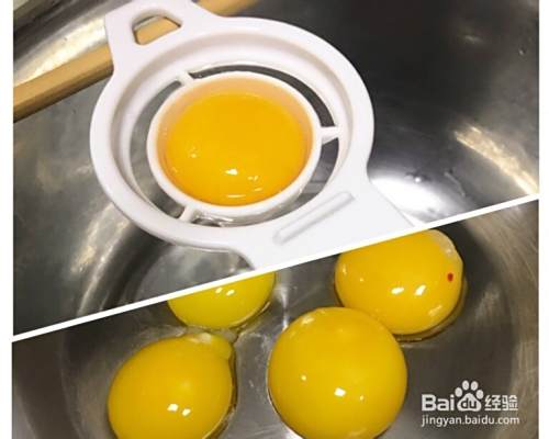 把蛋清和蛋黄分开。两个容器都应该干燥,没有水和油!记得!