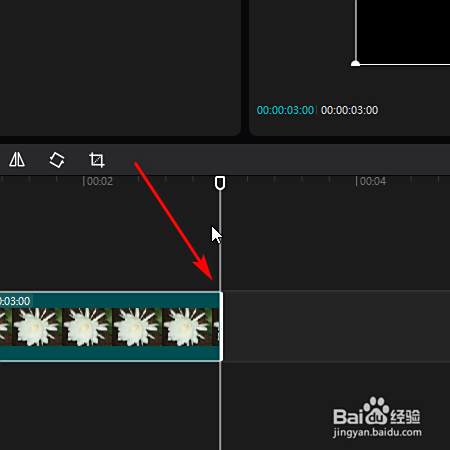 把时间线上的指针移到轨道上图片的末尾这位置来。