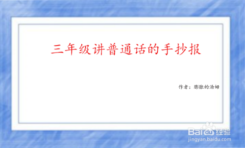 第一步,在白纸中间上方写下普通话手抄报六个字,用来点明主题。