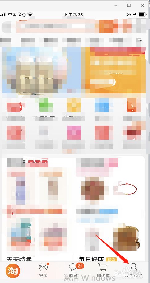 我们可以看到的是在界面的右下角有我的淘宝这个选项,之后点击我的淘宝进入我的淘宝界面