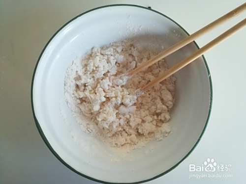 把面粉放盆里,加入适量沸水,用筷子搅拌成面疙瘩。