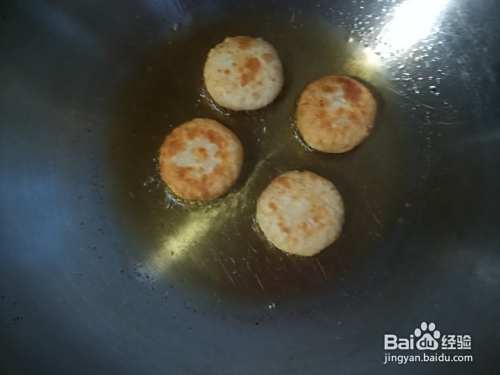 炒锅里倒入适量胡油,等油六成熟时,放入面饼生坯,调小火炸成两面金黄即可。