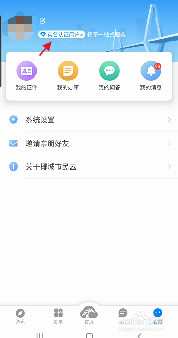 登录账号成功后,点击进入我的,查看账号是否实名认证,(实名认证才可办理相关业务)