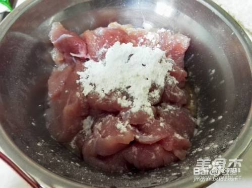 4瘦肉用少许盐和淀粉搅拌腌制一下