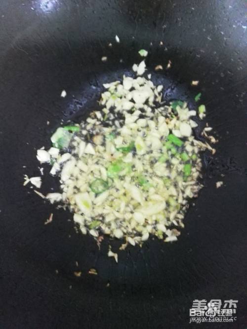 6热锅下油,把蒜蓉、香葱粒放进去爆香