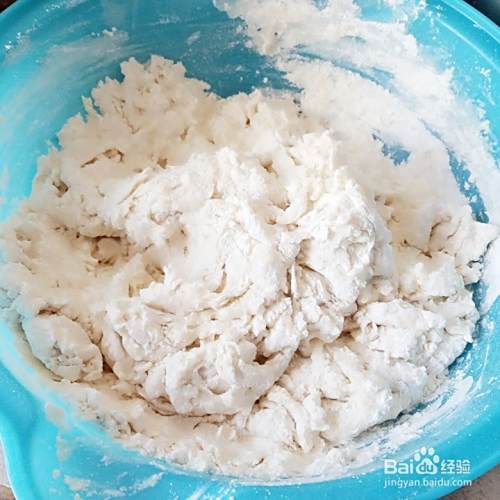 面粉放入5克酵母用温水合成面团,盖上盖发酵。