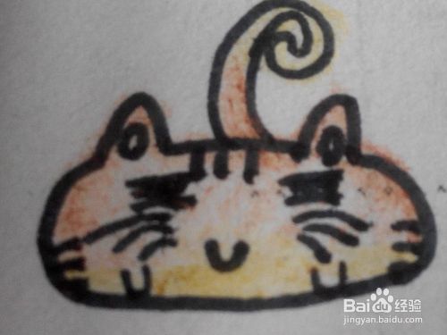 第八步--把胖胖猫的小肚皮涂上金黄色,其余地方都涂成棕色就大功告成啦ヾ(◍°∇°◍)ノ゙