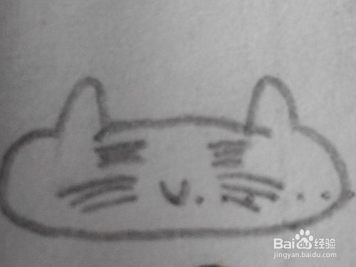 第三步--画出胖胖猫的一双三角形的小耳朵。