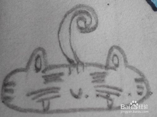 第六步--添加一些小细节,再接着画出胖胖猫的卷卷的长尾巴。