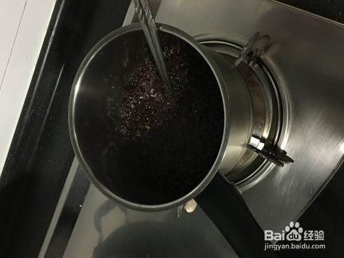 把煮好的豆子和汤水一起倒入小锅中,移至煤气炉小火慢煮,直至水分被收干。
