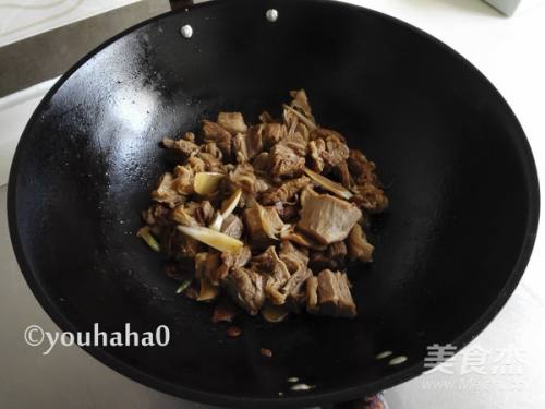 5锅中放植物油烧热,放入葱姜、陈皮爆出香味