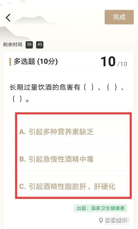 第十题,考察过量饮酒的危害,这些我们需要记住。