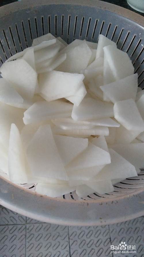 白萝卜含有丰富的维生素,芥子油,淀粉酶和粗纤维,它能止咳化痰,帮助消化,增进食欲,还可以治疗便秘和口腔溃疡,有小人参之称,可见其营养丰富,今天介绍白萝卜片的做法。