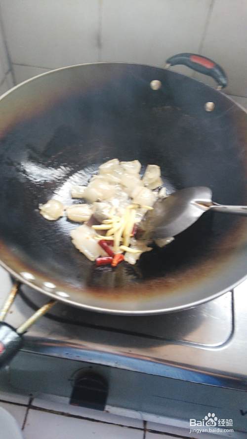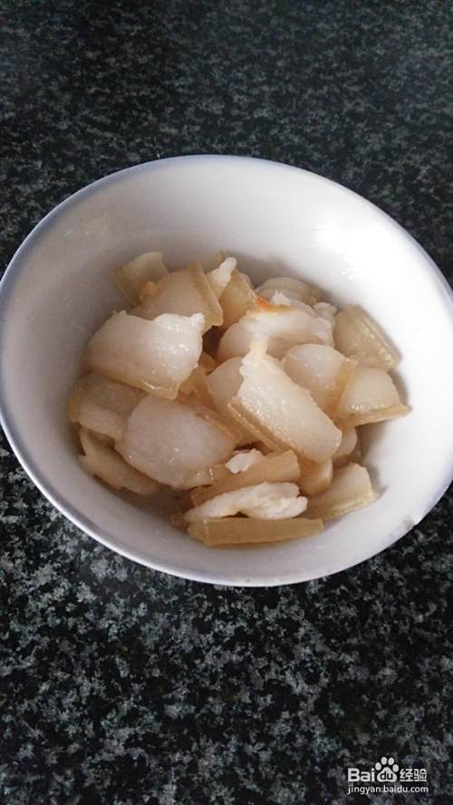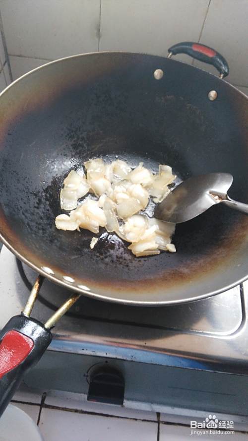 将肥肉倒入锅中,翻炒一会,炒出油;