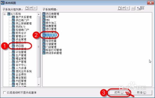 打开系统视图窗口,左侧选择【供应链】,右侧点击【仓存管理】,最后点击【打开】按钮。
