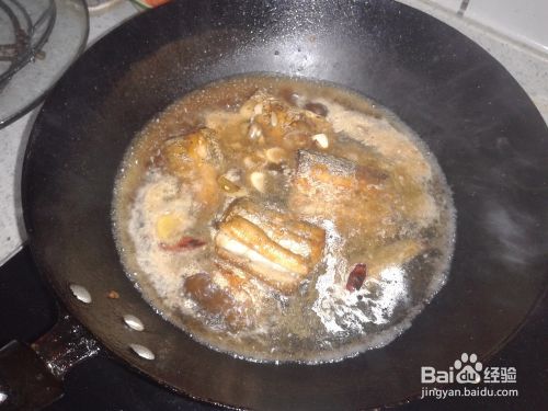 将事先炸好的带鱼段倒入锅中,然后将调好的料汁倒入锅中。