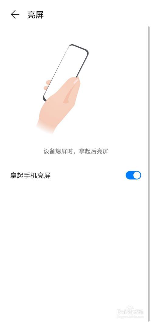 手机在熄屏后,是没有光亮的,如果还要按以下电源键才能亮屏较为麻烦,而华为手机是有拿起手机亮屏的功能的,如何设置呢.