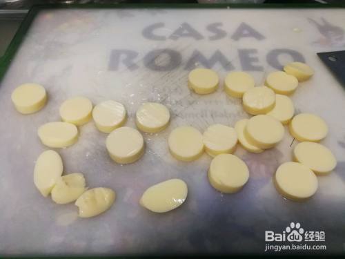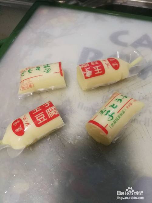 日本豆腐两根中间切断,慢慢挤出豆腐来