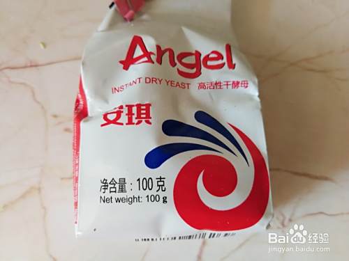准备好面粉,安琪酵母,按500克面粉,放入5克酵母的比例。