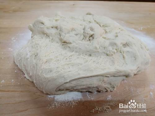 发酵好的面团放在面案上,揉出气泡,然后醒面10分钟,反复3次左右,当用手指按一下面团,面团很快弹起,面团就醒好了。