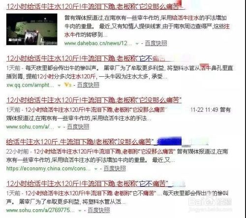 在这则新闻中,直接用管子给“活牛充水”,可以直观的将其称为“注水牛肉”。另外,注水牛肉还特指一些不法商家向放血之后的牛的心脏或者动脉中注水水分、明胶、泡打粉、各类防腐剂等物质后“形成的牛肉”。