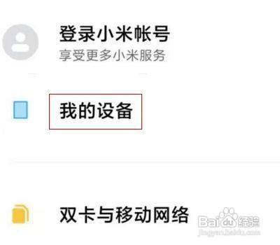 首先打开手机点击进入设置界面,点击我的设备选项进入。