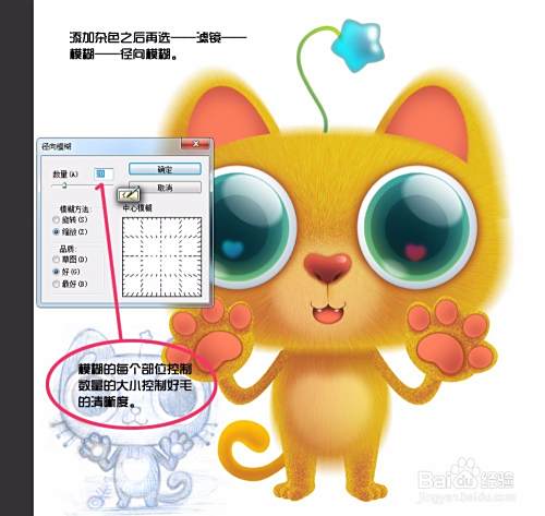 绘制毛的效果——滤镜——杂色——添加杂色——滤镜——模糊——经向模糊