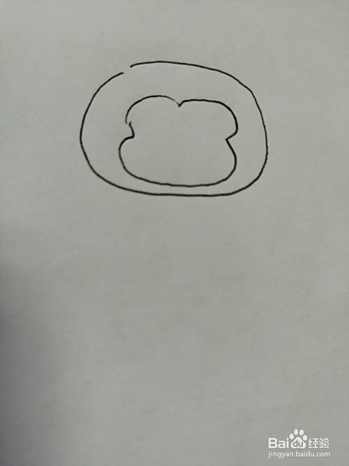 第一步,我们先把可爱的小猴子椭圆形的头画出来,注意头部轮廓的画法。