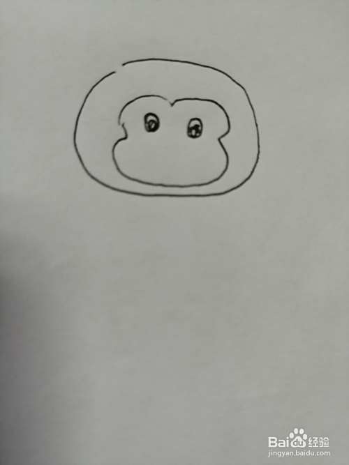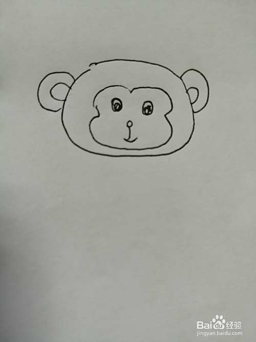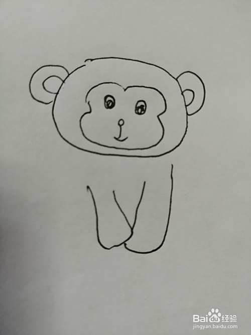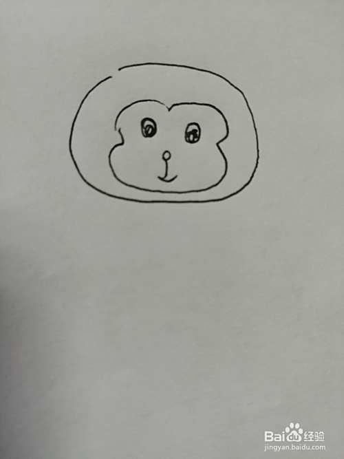第三步,然后在可爱的小猴子的眼睛下面画出鼻子和嘴巴,画法也比较简单。