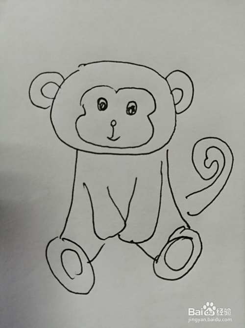 第七步,最后把可爱的小猴子的小尾巴画完整。可爱的小猴子就画好了。