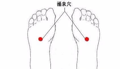 两手搓热,然后先后搓左右两只脚脚心的涌泉穴(脚底至趾前三分之一的凹陷处),来回数次至足底微热。