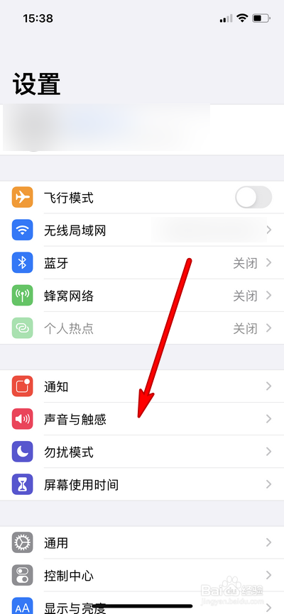 进入设置页面选择声音与触感。