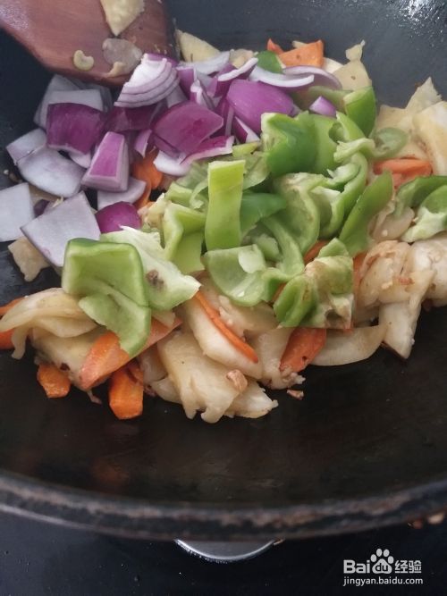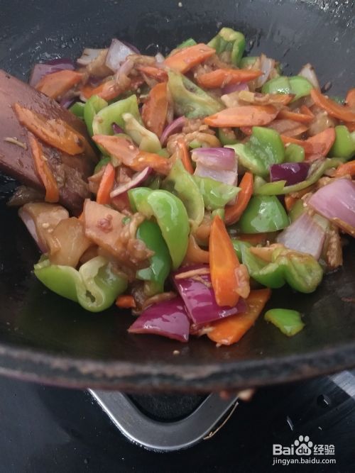 锅里放油,加热。待油温升至七成热时放入葱姜蒜爆香。先放胡萝卜翻炒。再放茄子翻炒。最后放入葱头和青椒翻炒。加入生抽,蚝油,适当加水,翻炒。出锅前加盐,味精。调口调味,出锅。