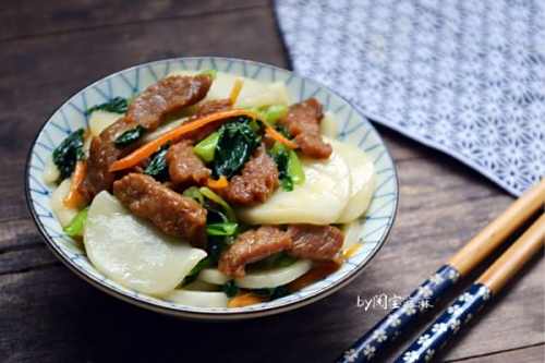 既能当饭又能当菜吃的牛肉青菜炒年糕,