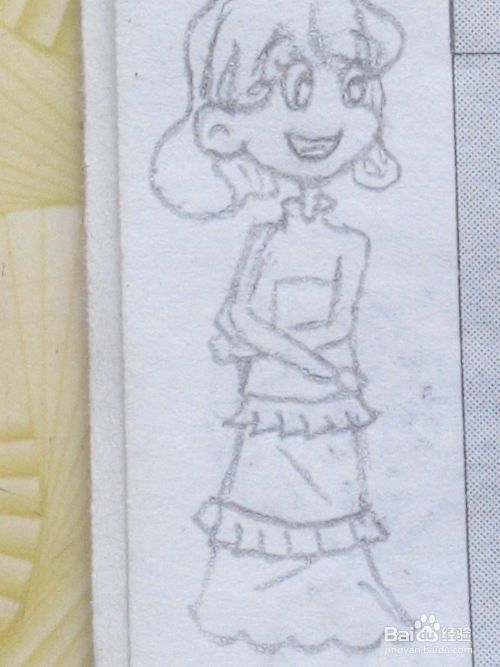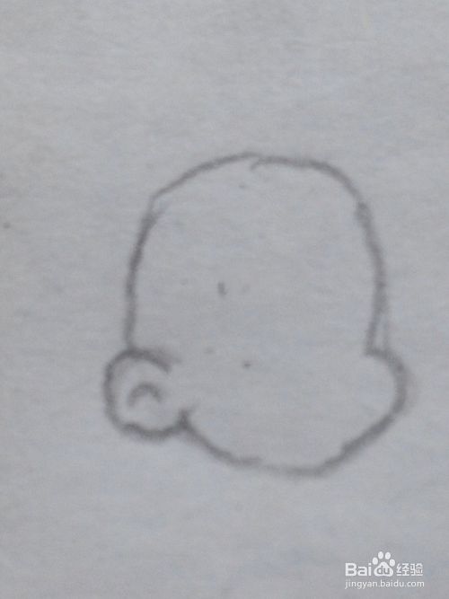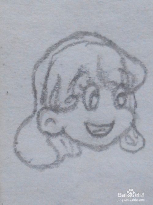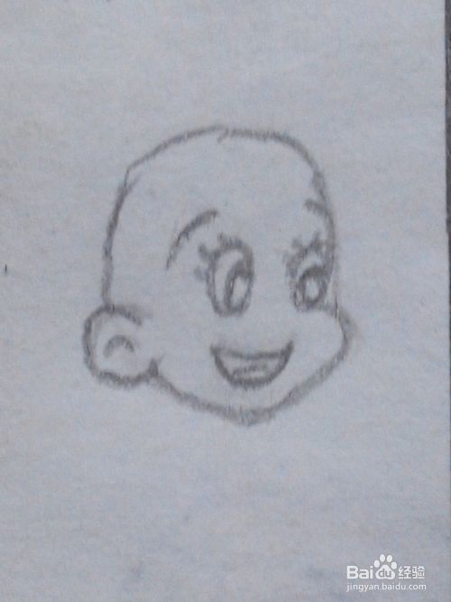 先画出教师的头和耳朵,再画出她的眉毛,眼睛和嘴巴。