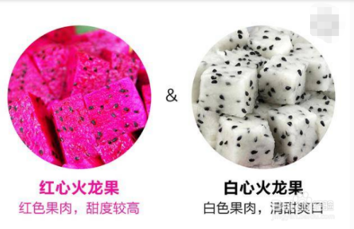 口感差异,红心火龙果因其与白心火龙果相比果肉多,甜感多,柔感度也柔软而火爆,而白心火龙果降下阵势来。