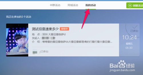 接着在我的活动这里,可以看到正在等待审核,通过即可发布活动成功。