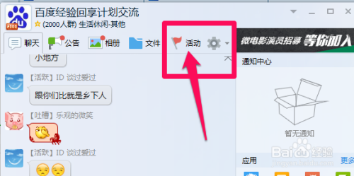 进入到群里面点击活动(有的群是点击应用)。