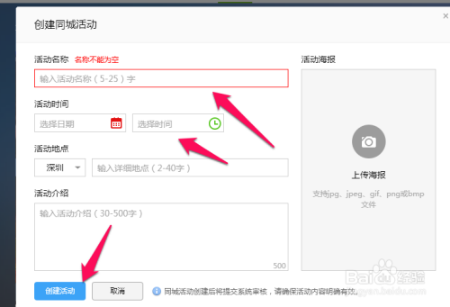 输入活动要求填写的信息,再点击创建活动。