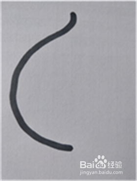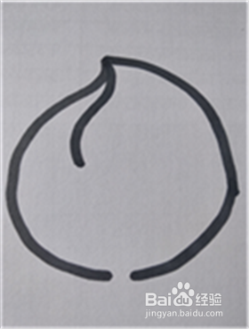 画出一个圆弧形,作为水蜜桃左边的轮廓线,注意线条平滑流畅,在线条上端留一个向上的弯钩形状的桃尖。