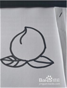 用同样的方法给水蜜桃加上右边的叶子,两边叶子大小要一致。水蜜桃基本轮廓就出来了。